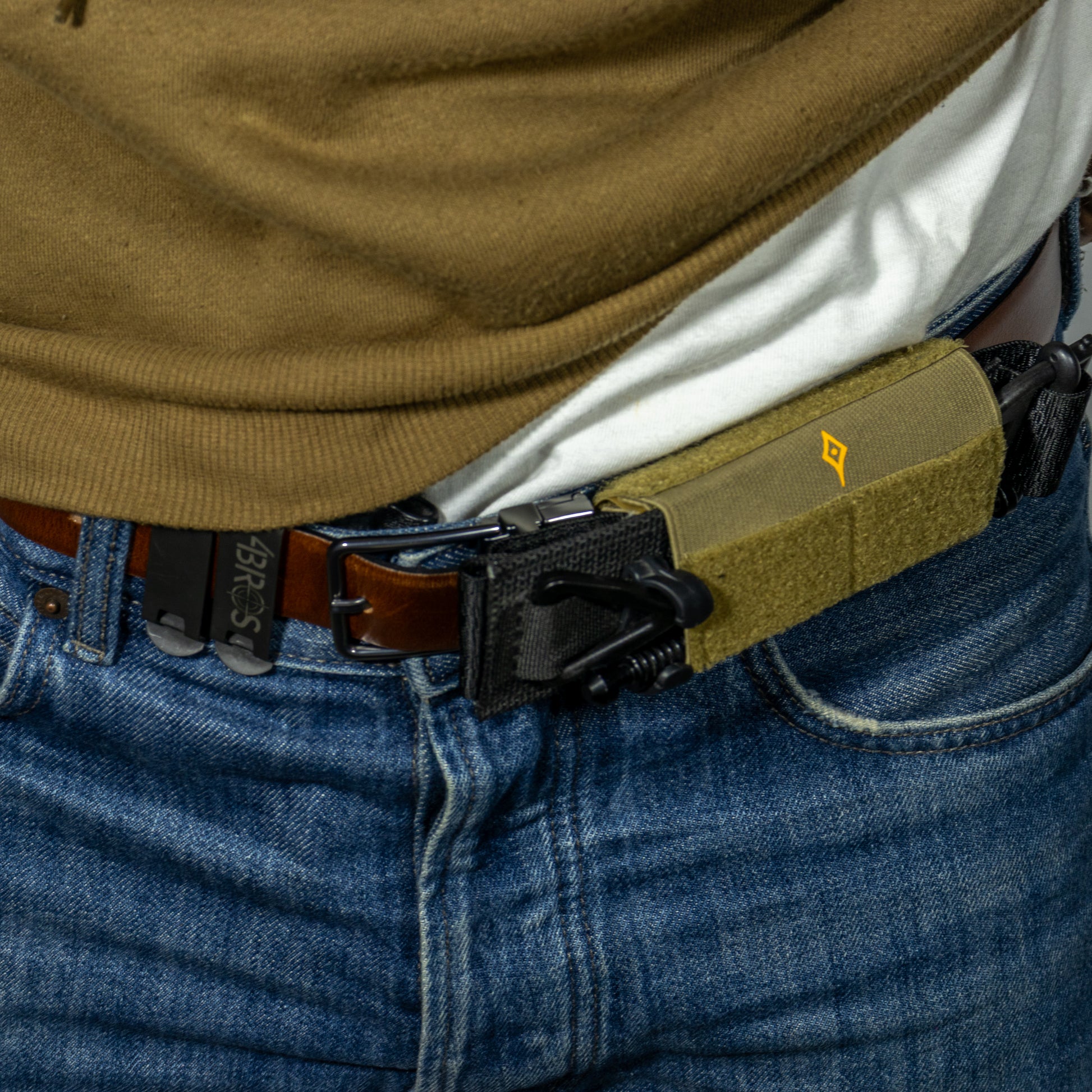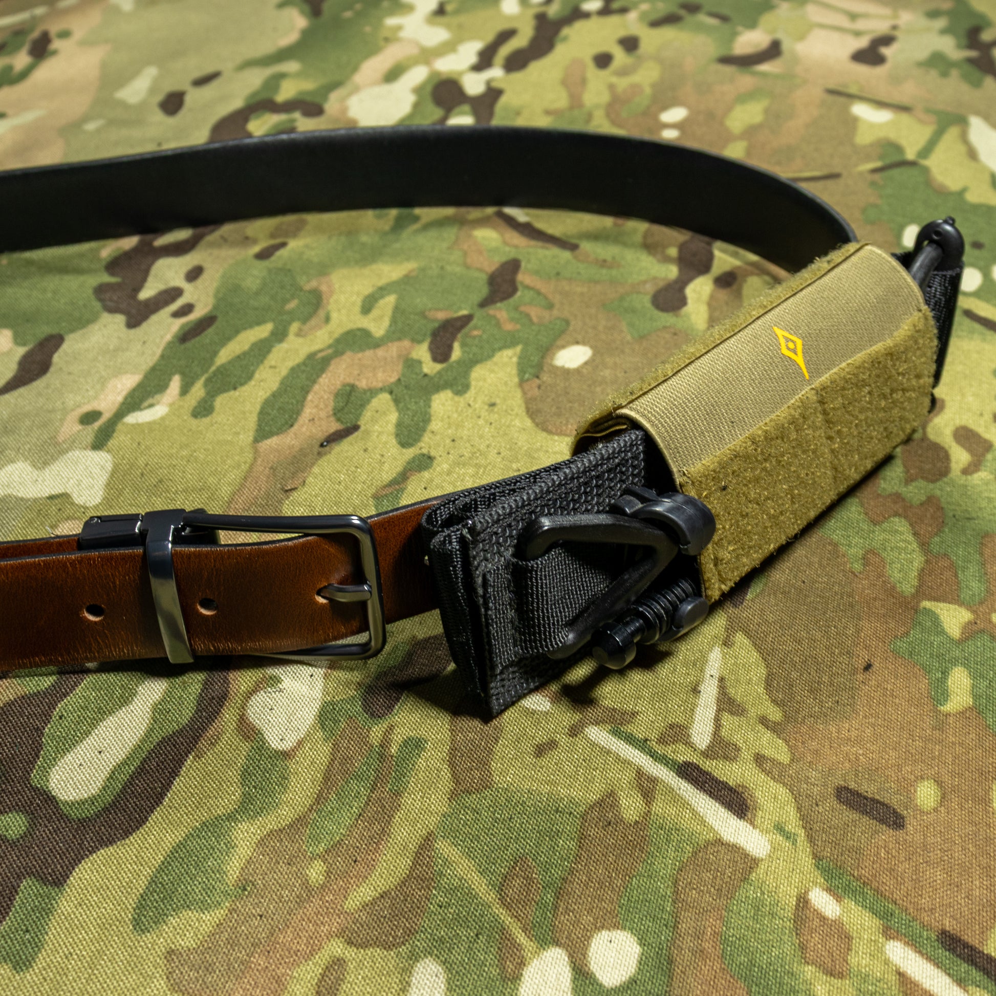 Su diseño permite fijarlo en cualquier sección de velcro del cinturón, chaleco o porta placas y también mediante MOLLE (en posición vertical u horizontal) si se adquiere en su versión con conector.
