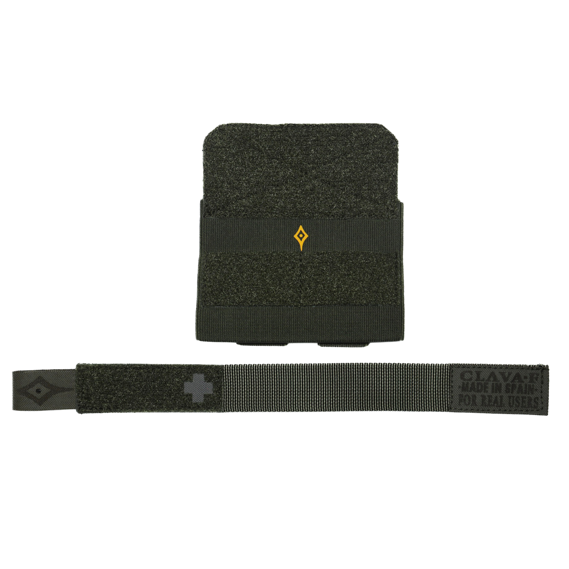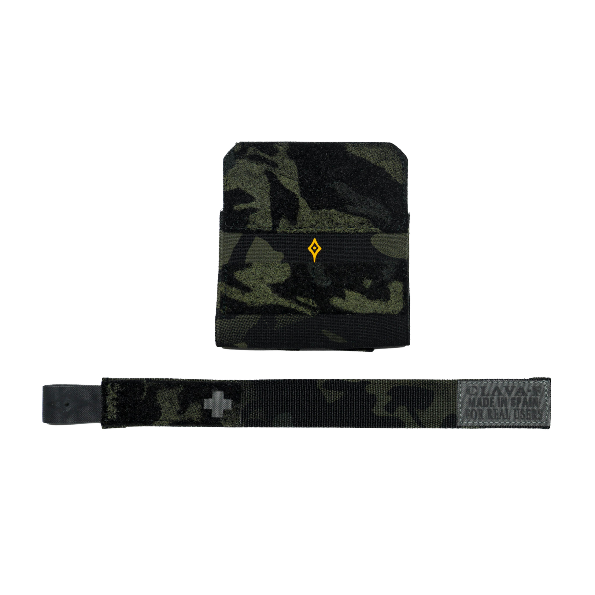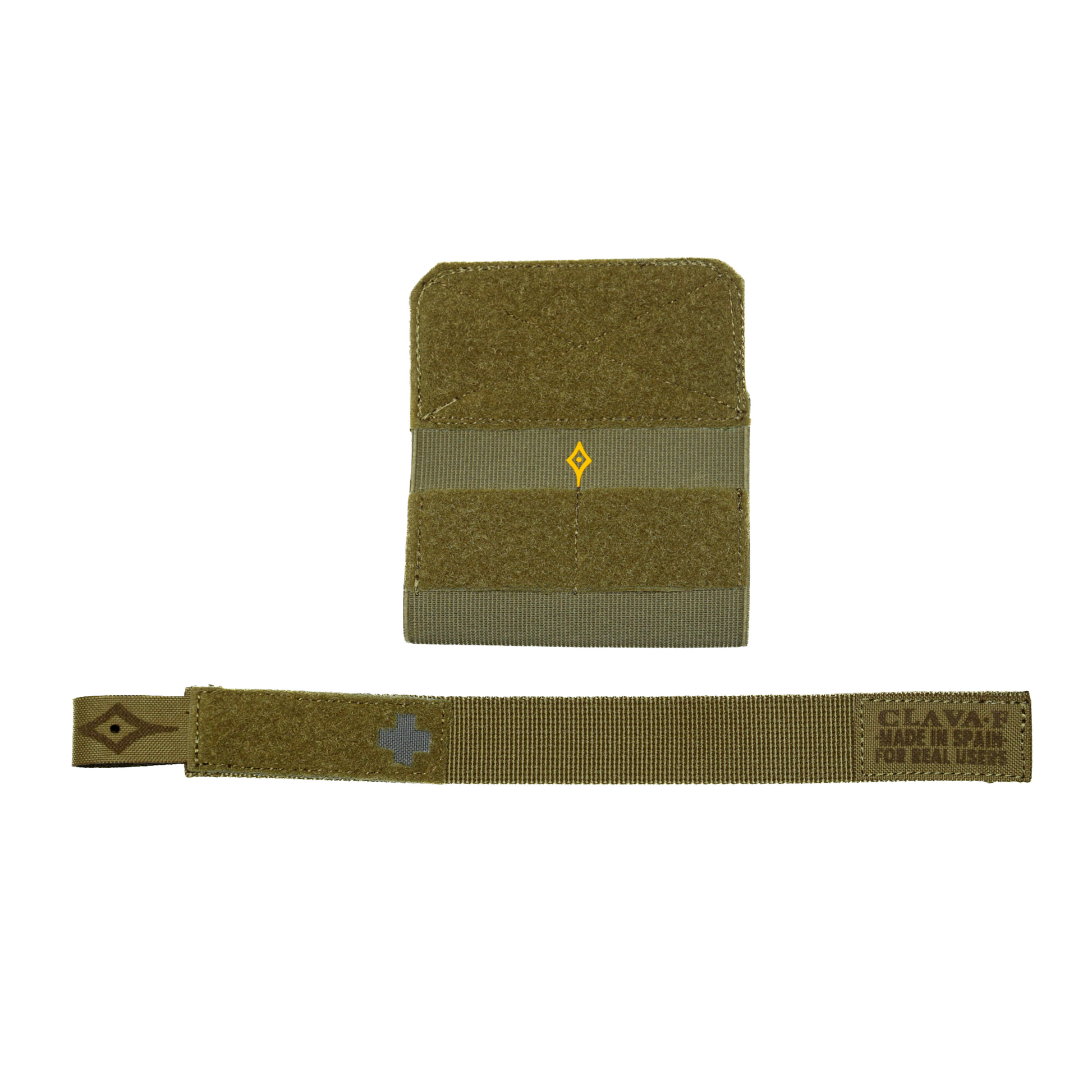 Versión estándar del Porta Torniquete Clava·F, pensado para solucionar el problema de tener que decidir entre la versatilidad de colocación de las gomas elásticas o la seguridad de un pouch clásico.