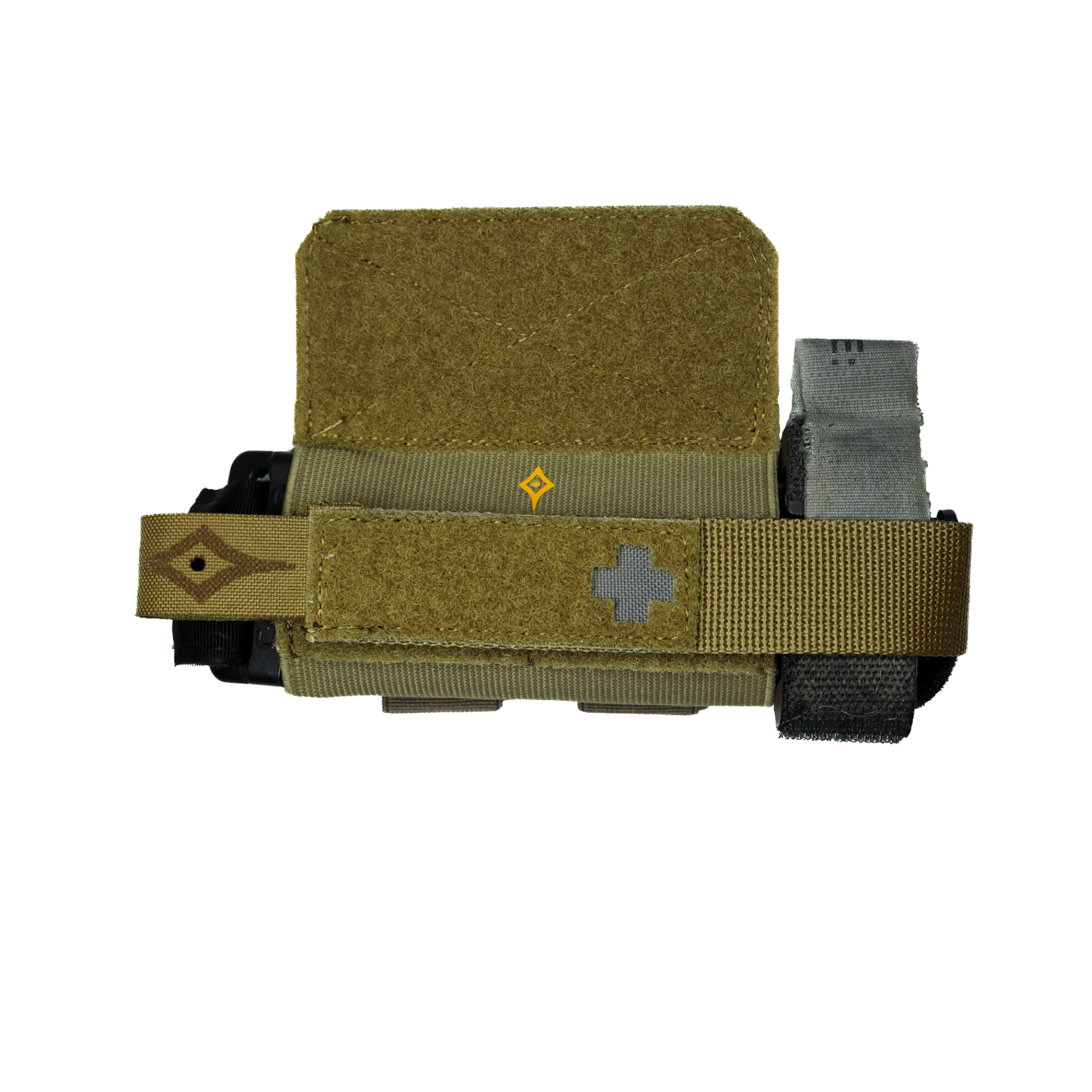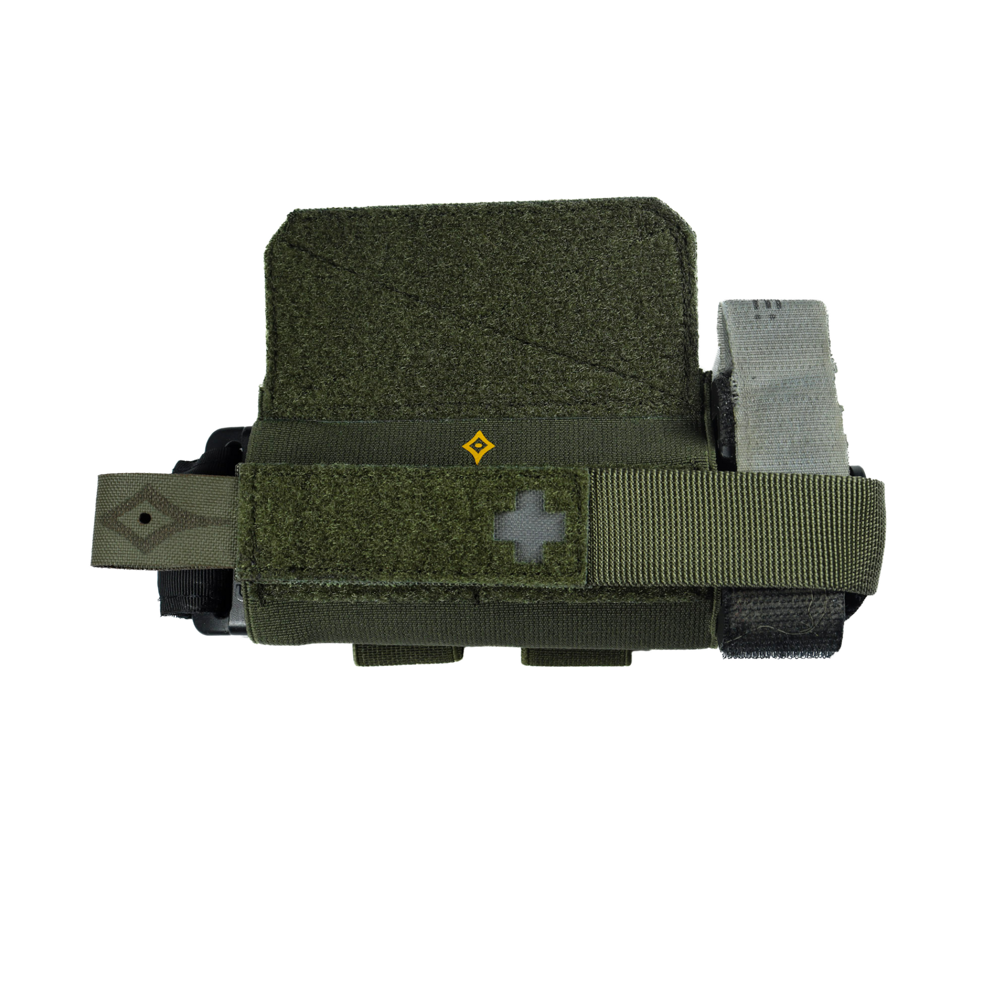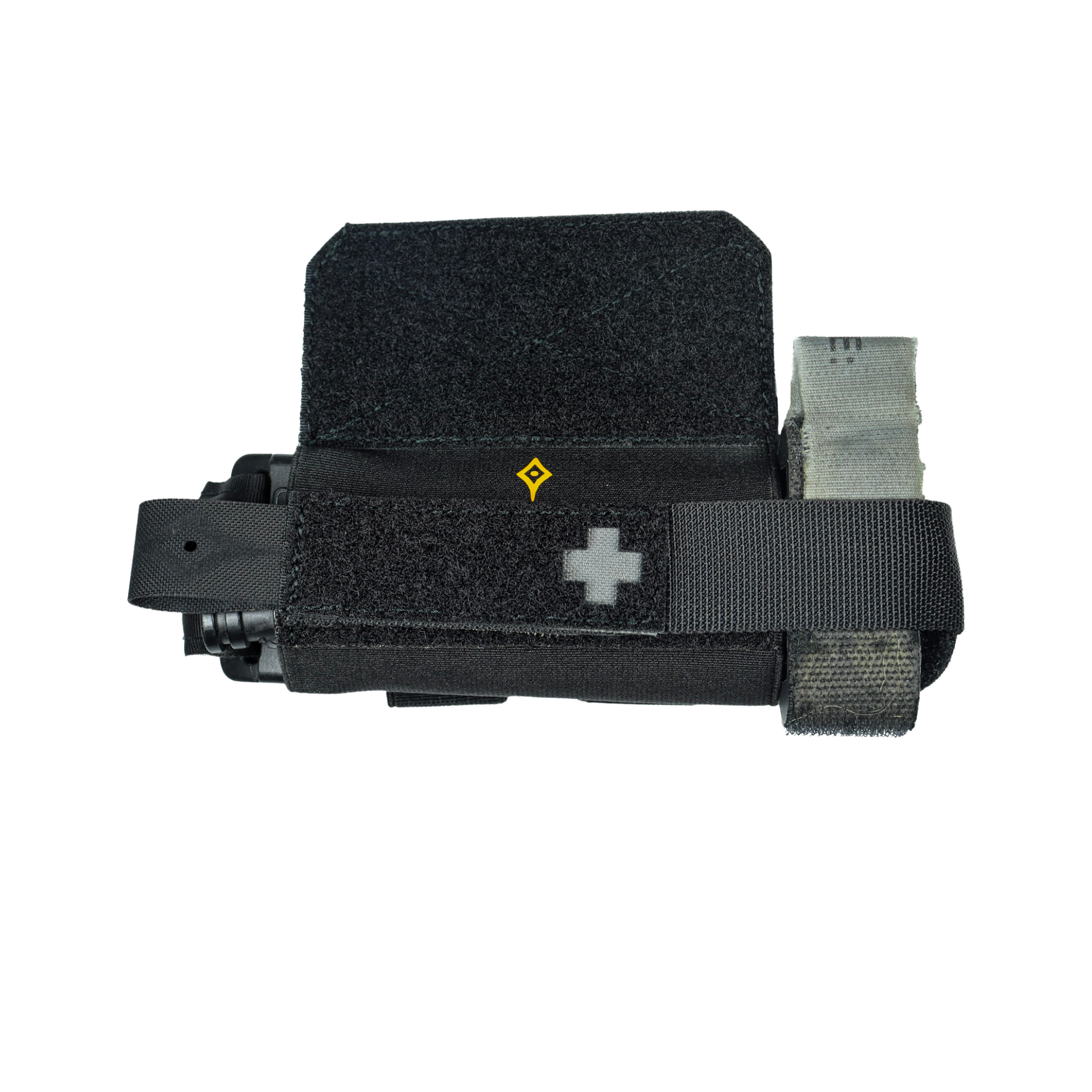 Versión estándar del Porta Torniquete Clava·F, pensado para solucionar el problema de tener que decidir entre la versatilidad de colocación de las gomas elásticas o la seguridad de un pouch clásico.